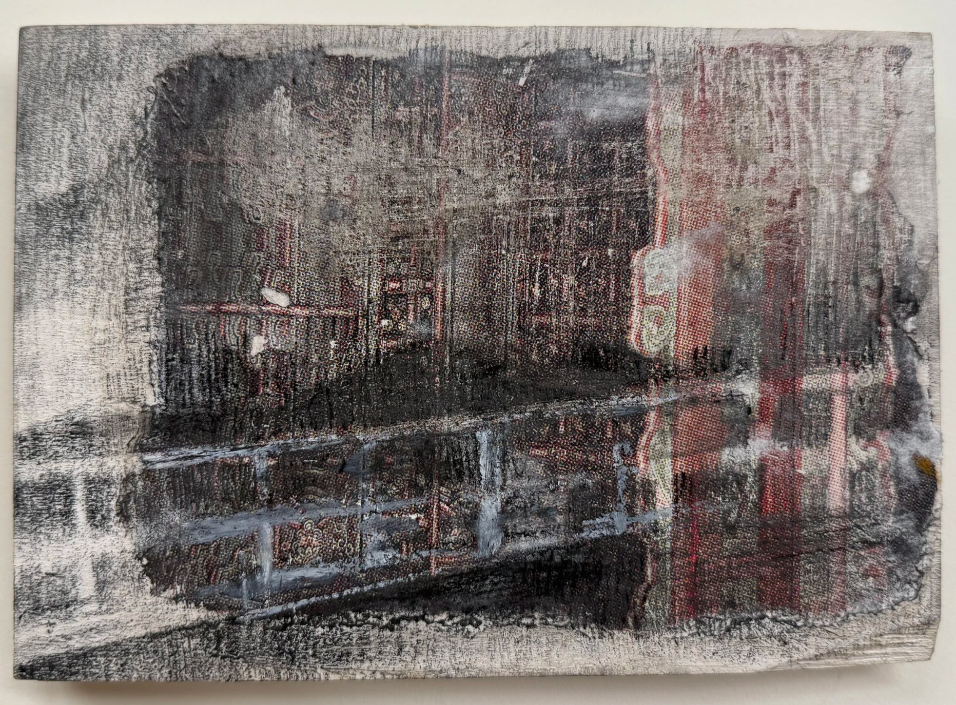 Mountains from Home, 5” x 8”, Graphite and Photo Transfer on Panel, 2025